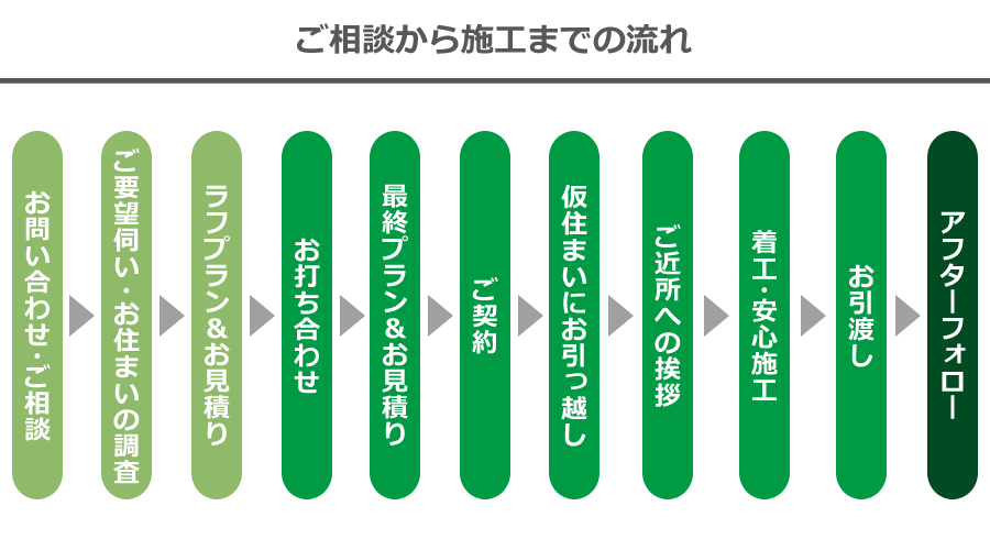 リフォーム工事が始まるまでに、このような手順で手続きが進みます。